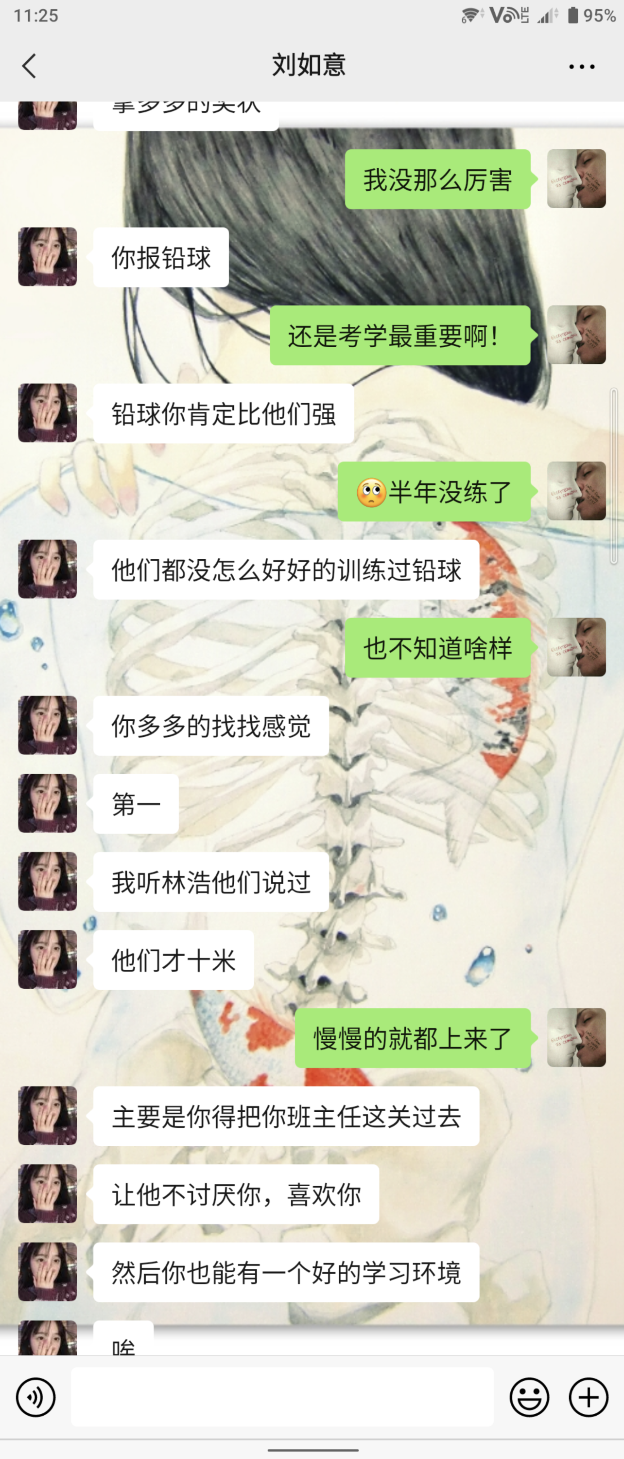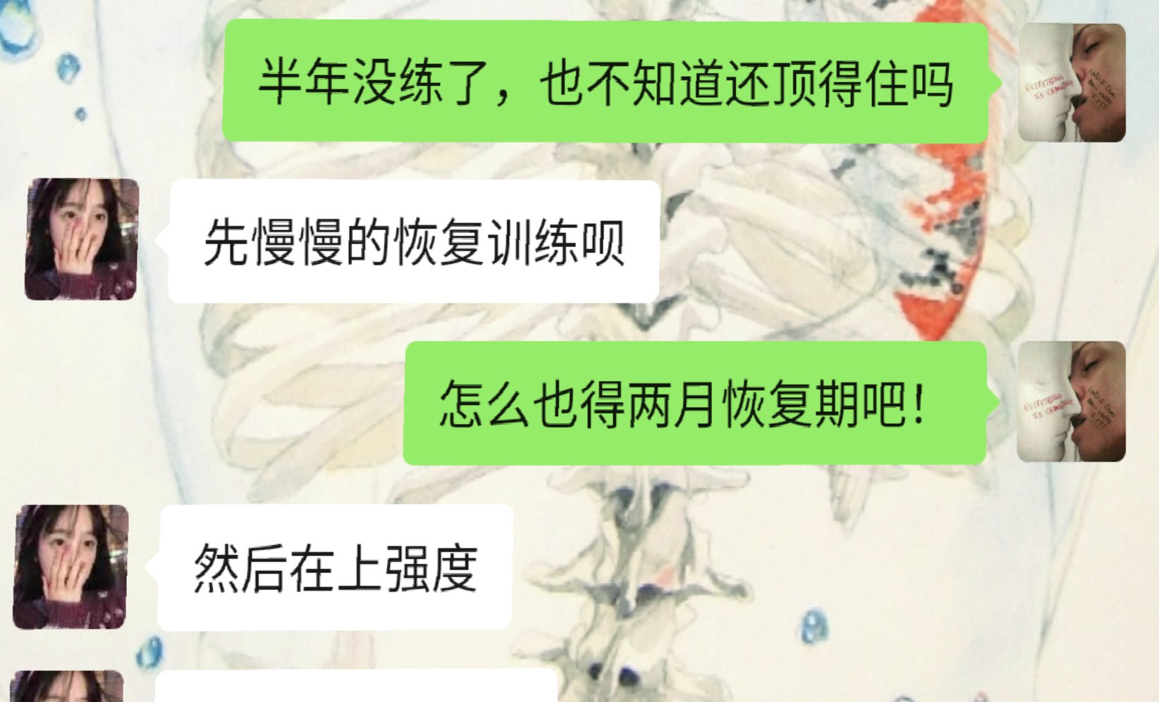 在新的班级里也很快交到了新的朋友,都是苦逼体育生(我只能算是业余的)聊的也挺投机的。还有就是在家里歇了这六个月训练明显跟不上了,一是自己体力耐力跟不上,二是很多技术动作也忘的差不多了。害,慢慢来慢慢提升,三年的事情我做四年也一定做不差!